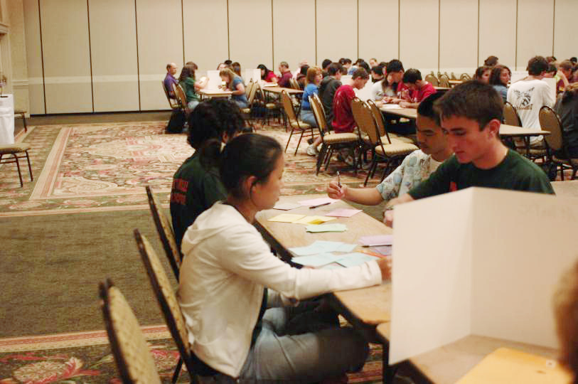 In general, and for a variety of reasons, the lighting at this event was not ideal for photography. For many of the thumbnails and intermediate images, especially when an entire batch needed the same lighting enhancement, I developed a quick adjustment (using the Adobe Photoshop "curves" technique) which I applied to all the thumbnail and the intermediate images in that folder. However, I specifically avoided changing the master original version. This is because I have not had time to fully refine the color adjustment — for example within the same room the lighting changes dramatically from place to place depending on whether the subject is more strongly lighted with a window, a florescent light, or one of the colored hue lights.