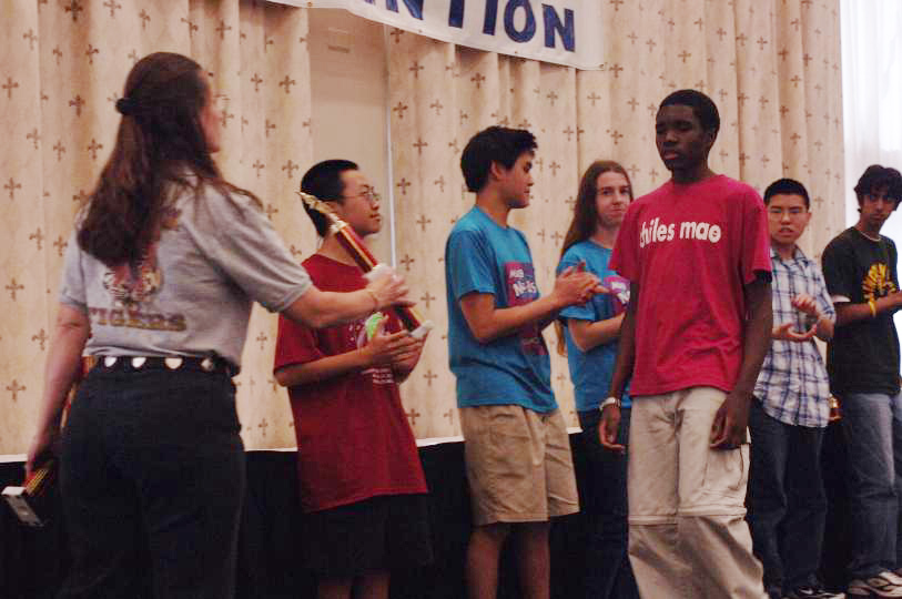 In general, and for a variety of reasons, the lighting at this event was not ideal for photography. For many of the thumbnails and intermediate images, especially when an entire batch needed the same lighting enhancement, I developed a quick adjustment (using the Adobe Photoshop "curves" technique) which I applied to all the thumbnail and the intermediate images in that folder. However, I specifically avoided changing the master original version. This is because I have not had time to fully refine the color adjustment — for example within the same room the lighting changes dramatically from place to place depending on whether the subject is more strongly lighted with a window, a florescent light, or one of the colored hue lights.